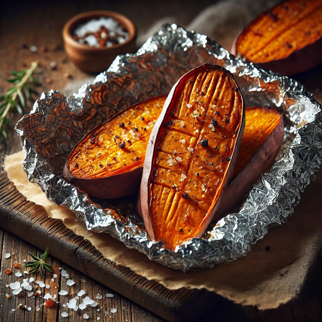 Durante la castañada también se comen boniatos asados. Para mí fue total novedad ver cómo se asan los boniatos envueltos en papel de plata cara a cara con las brasas encendidas.