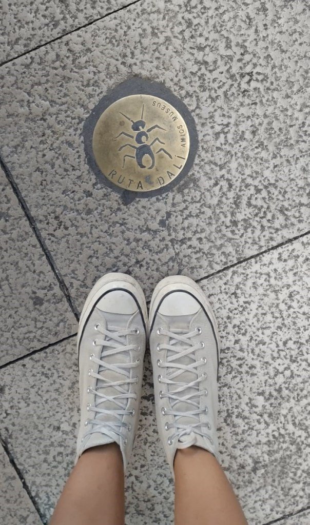 Si eres como yo, que vas caminando y mirando hacia abajo, seguro habrás notado que hay unas pequeñas hormigas dibujadas sobre placas de metal en el suelo. En el surrealismo daliniano, las hormigas representan la descomposición, el paso del tiempo y la fragilidad de la vida. Su presencia en el suelo de Figueres guía al inquieto visitante hacia el lugar donde su legado artístico permanece más vivo: el Teatro-Museo Dalí